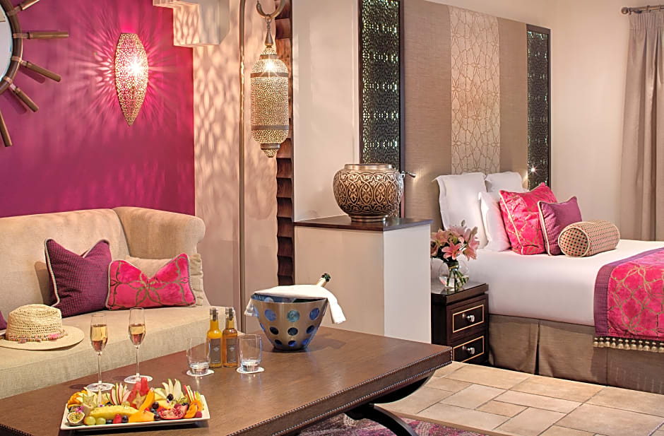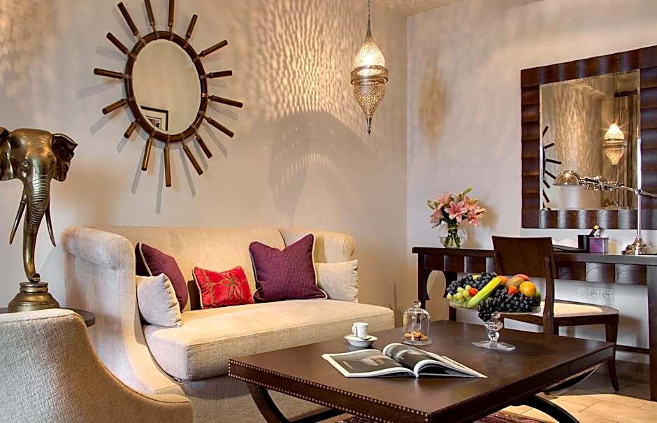 This double room is decorated in contemporary/ Mediterranean/ Oriental style. It is composed of a terrace with garden views, a bedroom and bathroom with walk-in shower. Additional facilities include a hairdryer, air-conditioning, bathrobes and slippers, mini-bar, satellite TV, free Wi-Fi, safe and smartphone station.